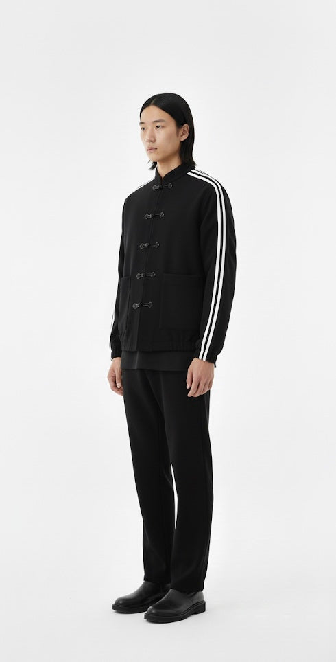 A cross-cultural fusion of heritage and high-performance streetwear. This piece reinterprets the classic track silhouette through the lens of traditional Eastern craftsmanship, resulting in a unique, elevated essential for the modern wardrobe.