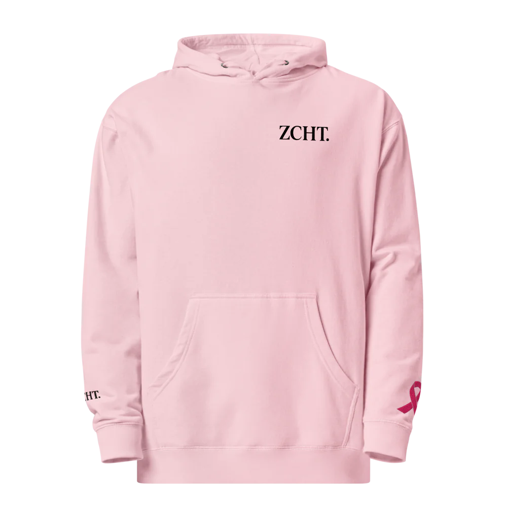 The ZCHT. Pink Ribbon Hoodie is a reminder to be gentle with yourself and others. A slightly weighted design for a “hug” feel, crafted for those who value softness, stillness, and meaning in what they wear.