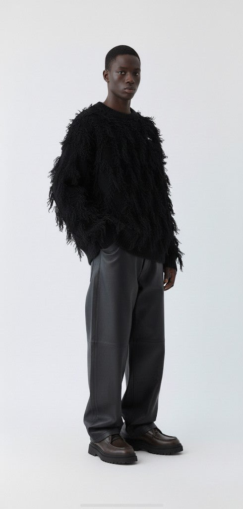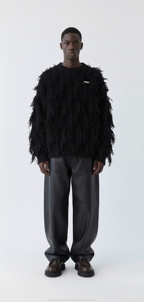 This long-sleeved crewneck belongs to CAPSULE 0126, an iconic chapter in the ZCHT. archive that explores textile expression through restraint and craft. The piece is defined by a woven tapestry construction enriched with sculpted fringe detailing, creating depth through movement and shadow.