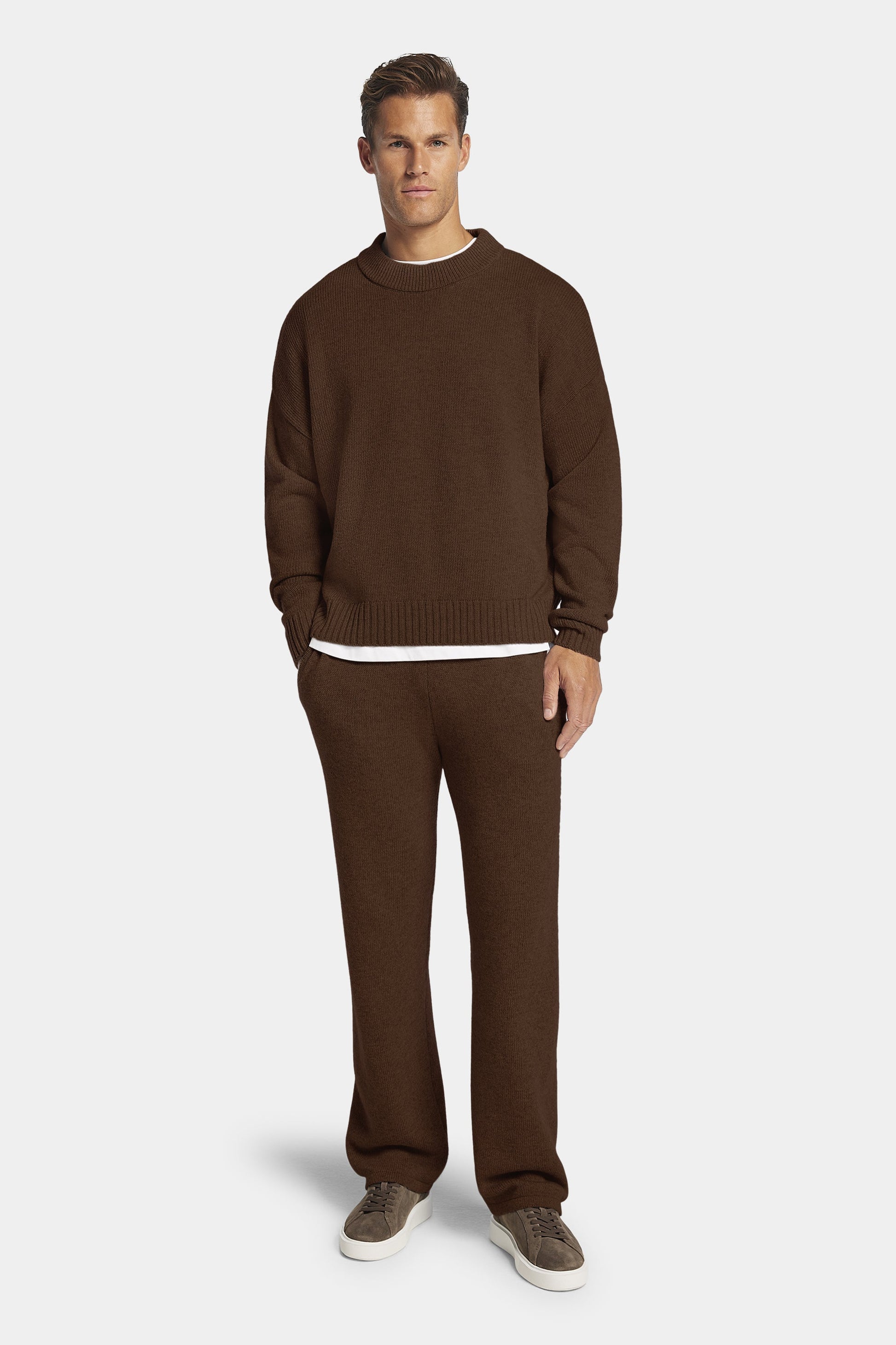 Knitted from a soft wool blend, it offers warmth and comfort while keeping a clean silhouette. The relaxed leg, ribbed waistband and subtle melange texture create a composed, effortless look.